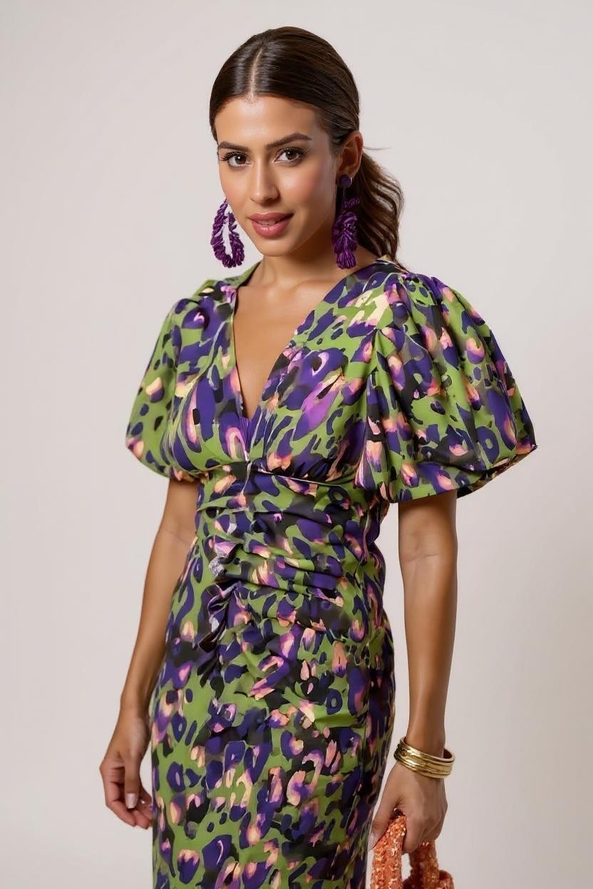 Den er fremstillet af åndbart materiale og har smukke plisserede ærmer, som giver et elegant og feminint udtryk. Uanset om du skal en tur i byen eller til en sommerfest, så er du altid pænt klædt på i denne kjole.